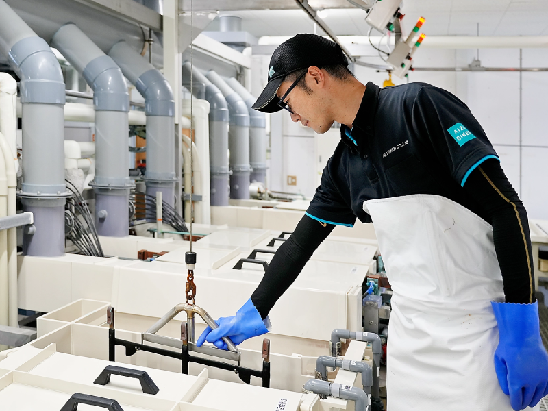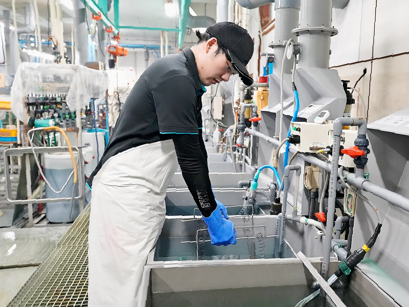 自動車などのアルミニウム部品にめっき加工をする作業を担当しています。