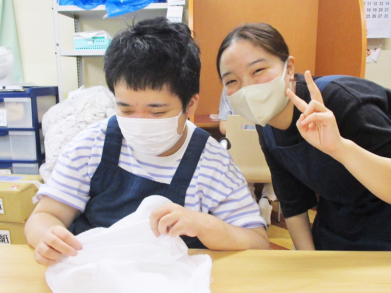利用者の方と一緒に取り組み、「できた!」「ありがとう!」という言葉を聞いたり、笑顔を見た時に喜びを感じます。また、SNSなどを通して利用者の方と作った商品への温かい言葉をいただいた時にも喜びを感じます。