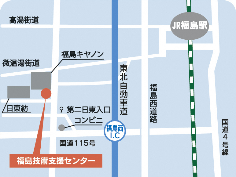 - 東北自動車道・福島西I.C.より約2km、車で約5分